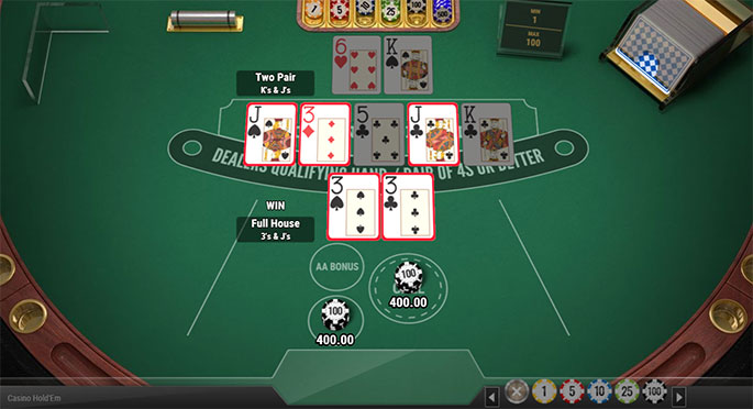 Tỷ lệ trả thưởng tại Casino Hold’em