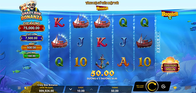 Câu Cá Bob Điên Cuồng slot thu hút người chơi tại FB88 chính nhờ các vòng quay quay lớn. Tiền thưởng mà vòng quay mang lại là con số không hề nhỏ, ngoài ra các tính năng như Thu thập tiền mặt, Giải độc đắc cố định hoặc cơ chế tăng cường đều có ý nghĩa riêng.